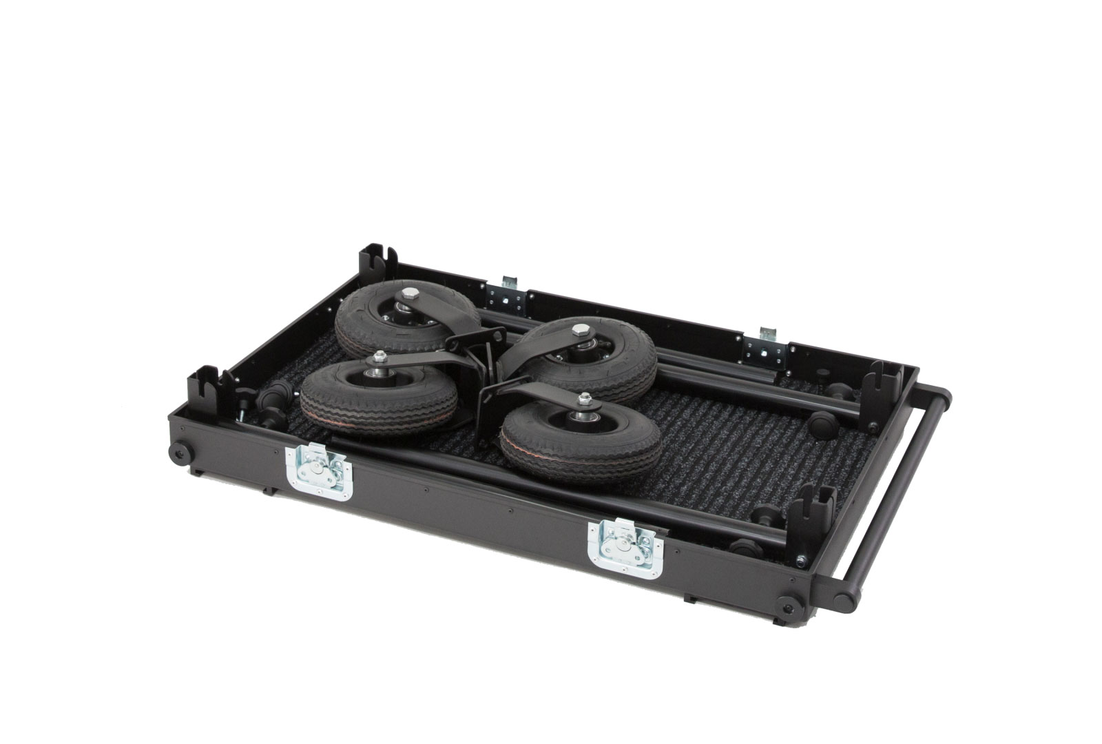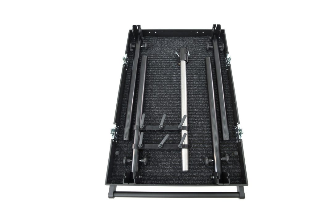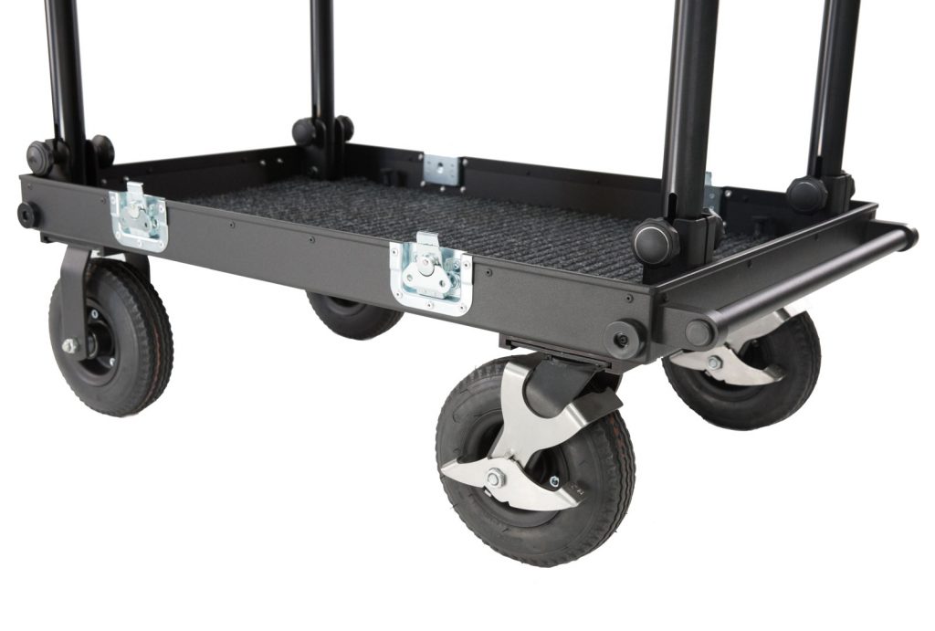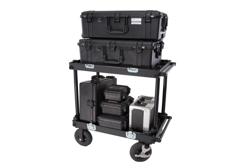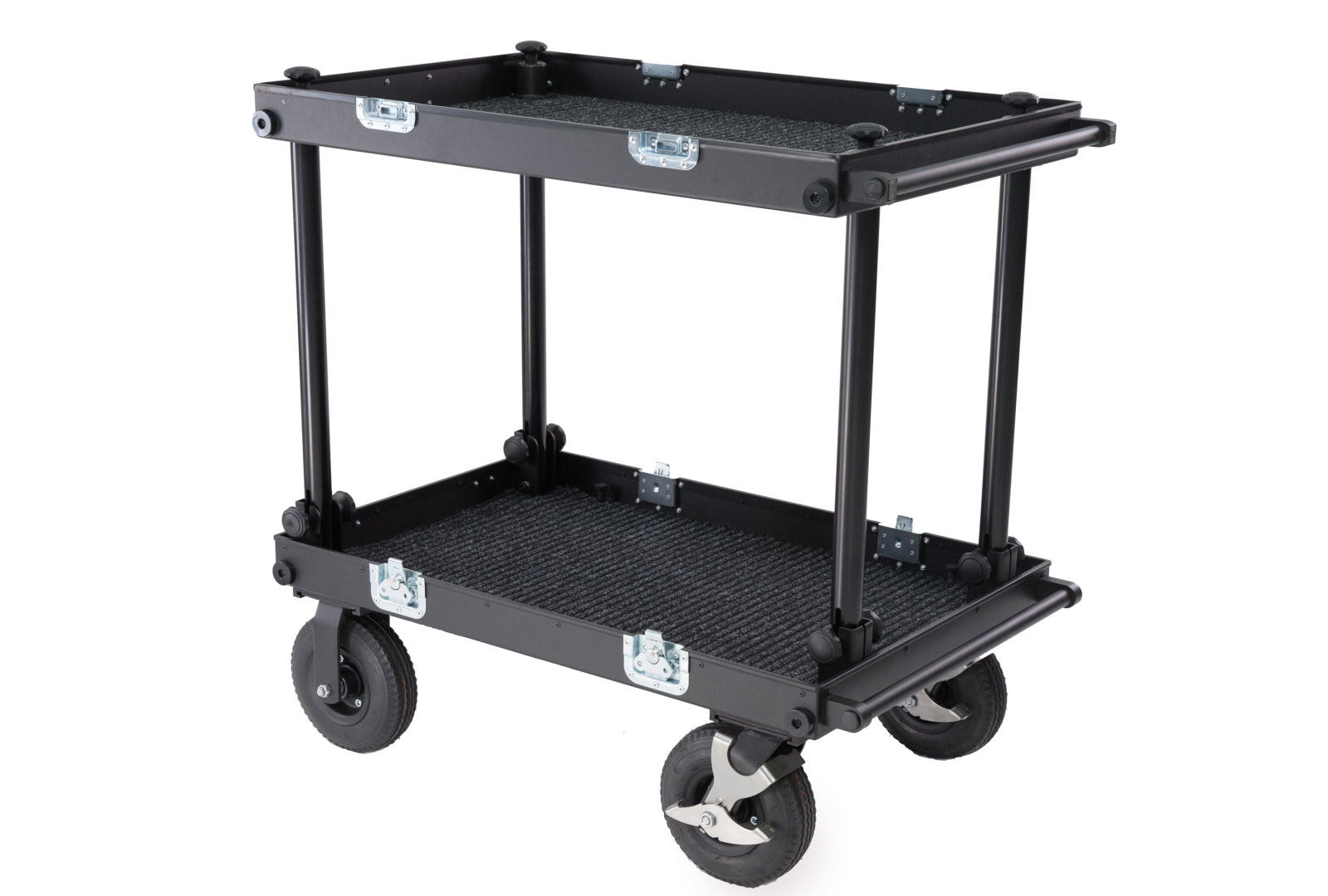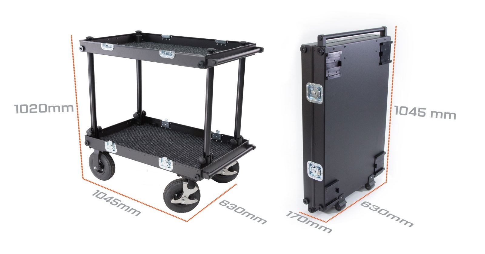 Double deck cart can be used to transport equipment or as a workstation, all parts can be transport in one case including the accessories.