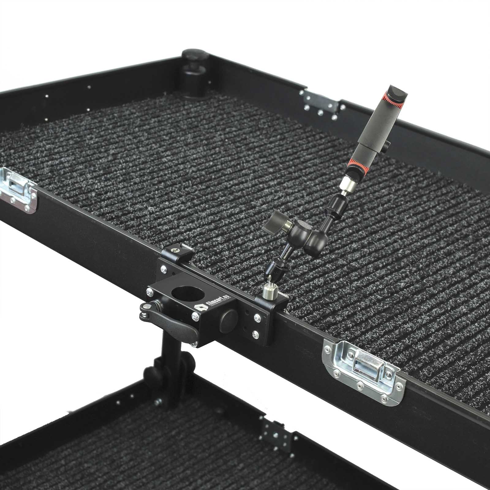 This soltion allows you to equip your filmcart with aluminum plate. 35mm pipe holder allows to install additional 35mm pipe accessories like 3-section pipe, 35mm pipe with Vesa. Presented product provide excellent grip on the pipe.