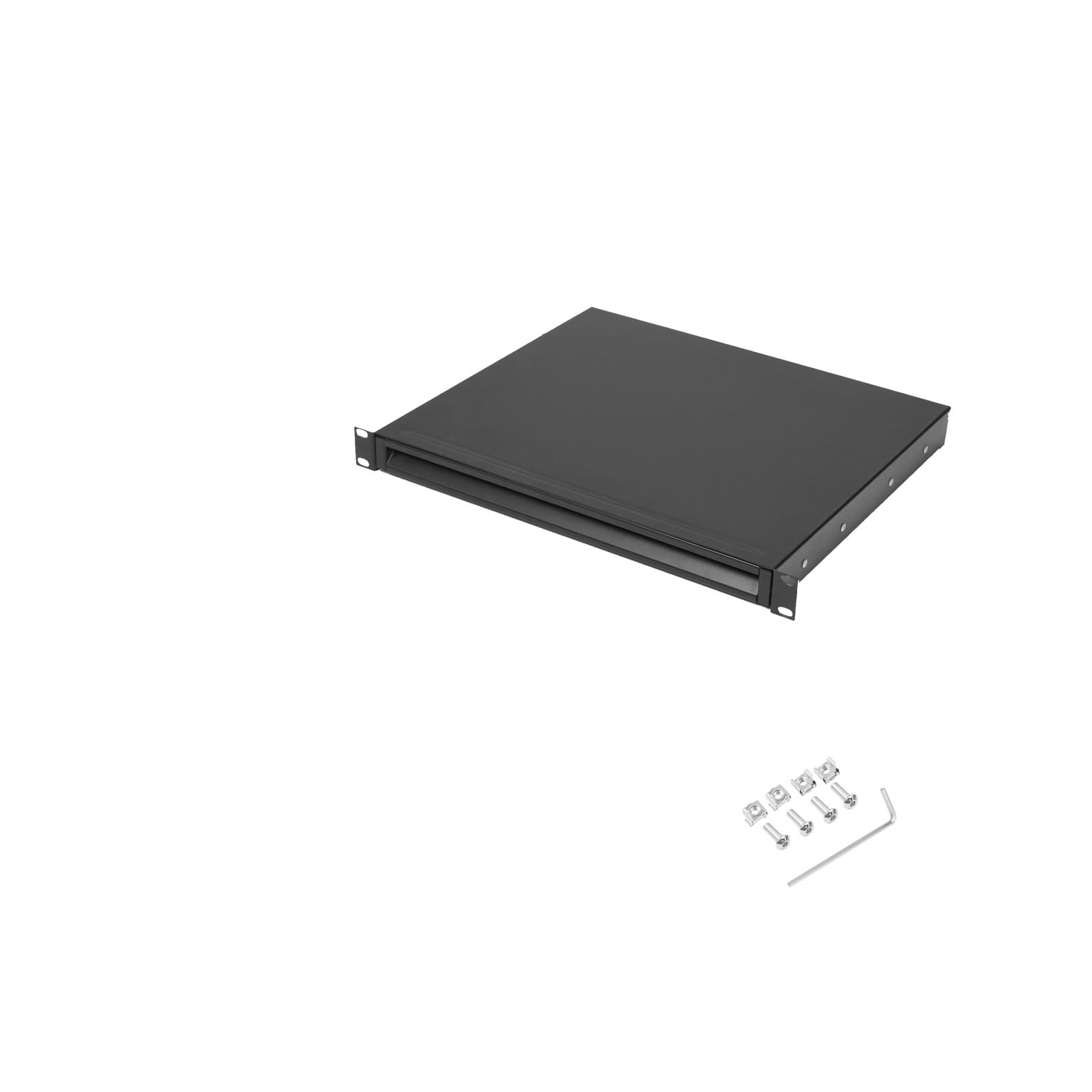 This drawer is 19″ wide, with 388mm instalation depth and 1 Unit of rack installation height.
