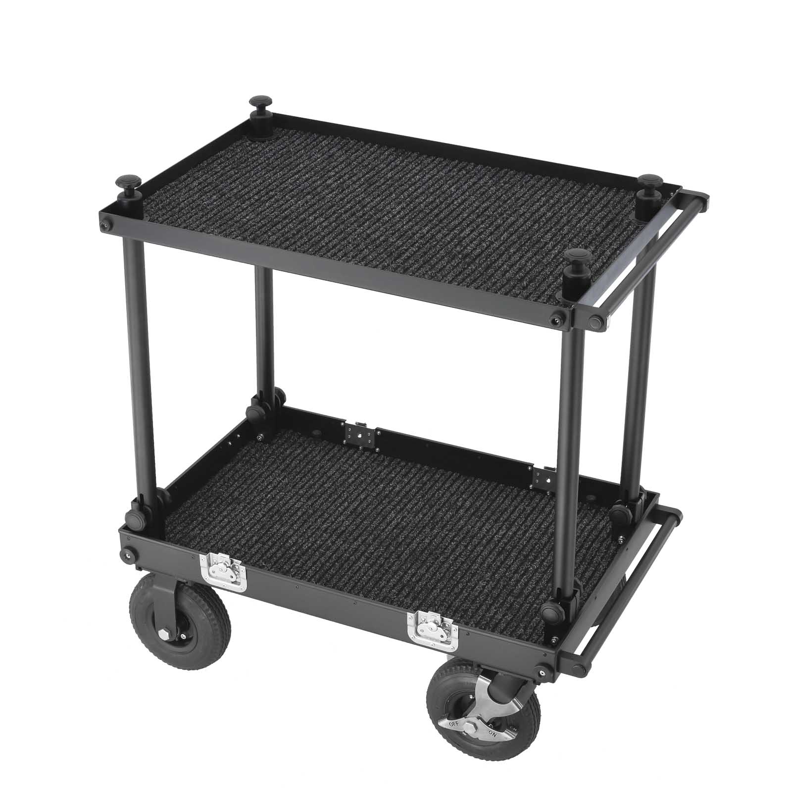 The SMARTONE double deck cart can be used to transport equipment or as a workstation. We applied durable materials to face the harsh on set conditions, tires are made from 4-layer gum placed on strong steel rims equipped with 2 manual foot brakes with force regulation for secure and save routing on most of the surfaces, aluminum structure is lightweight and sustained enough to hold up to 200 kilograms, no tools are required to attach of remove each wheel or any part of the cart what saves your time. We developed a list of details which can improve the quality of usage like small transport wheels, props and deflects. Compact size allows the cart to transport easily all parts in one case.