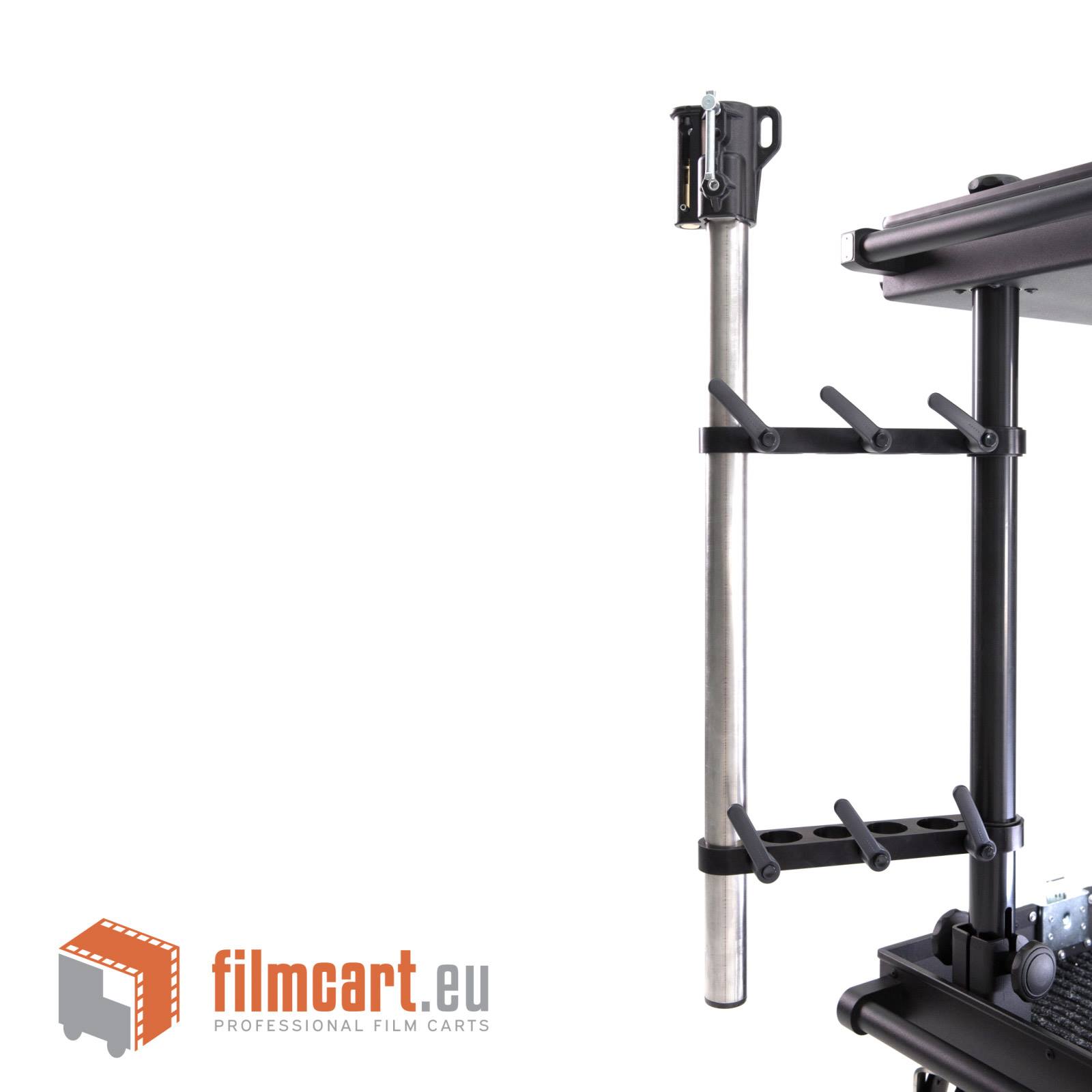This solution allows you to mount heavy equipment on the Smartone and Smartone XL , Smartone mini, Smartone micro carts: monitors, steadicam, mounting heads 100mm-150mm. You can also install any stand whose section allows you to clamp onto our 35mm tube.