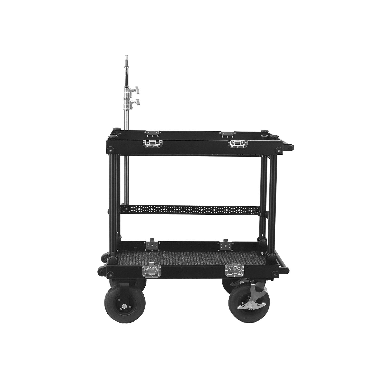 This Monitor mount system allows you to securely mount your monitor on the cart. Variety of holes provide numerous setup options. Medium 3-section pipe allows you to easily change the level of your monitor. This setup is based on steel crossbars to provide maximum security for your equipment. Additional holes in crossbars can be used to add even more accessories. It’s very easy to mount. This setup fits Smartone Standard.