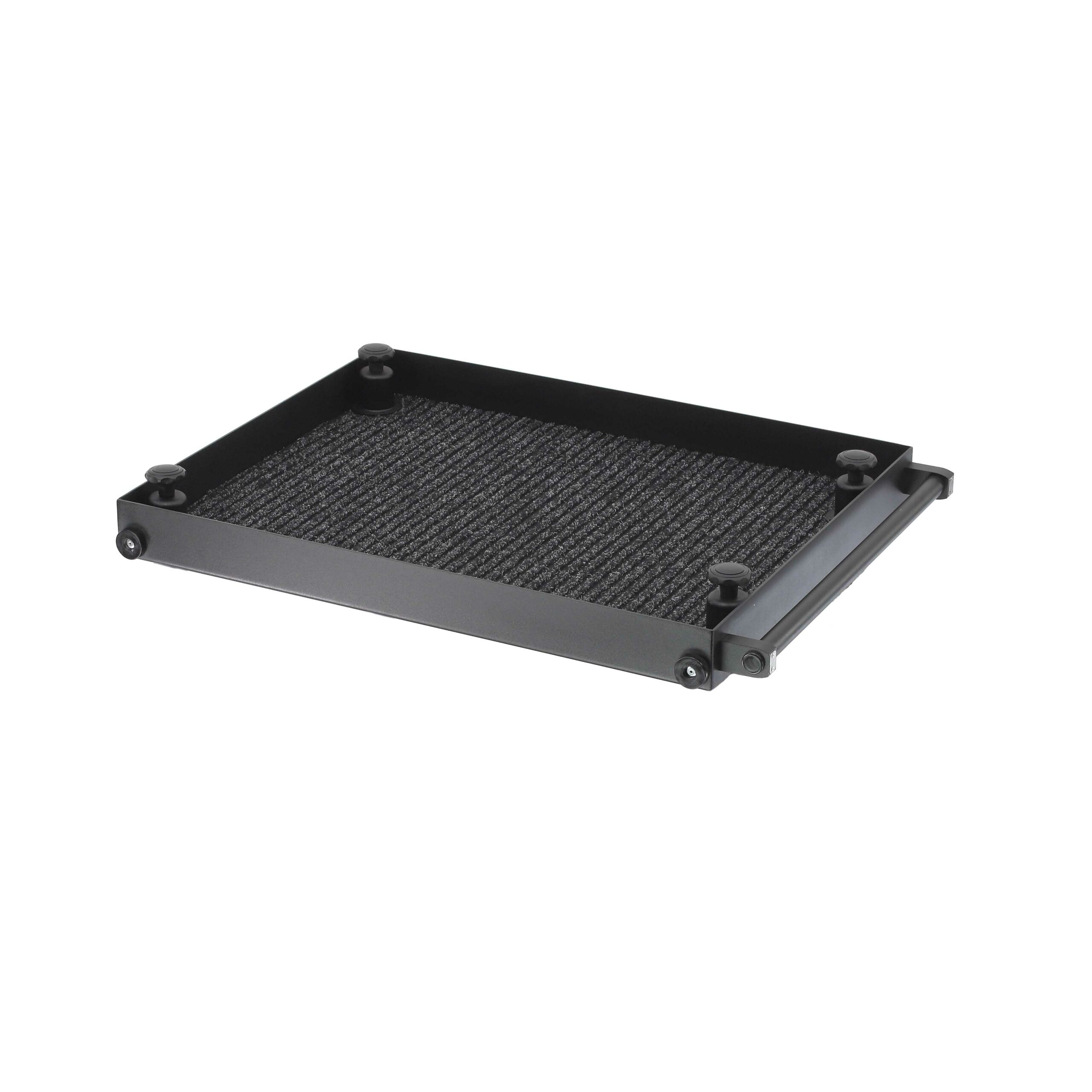 Regular shelf without locks extends possibilities to mount more accessories on side walls (disables full cart collapsing), great to transport equipement or as a workatation