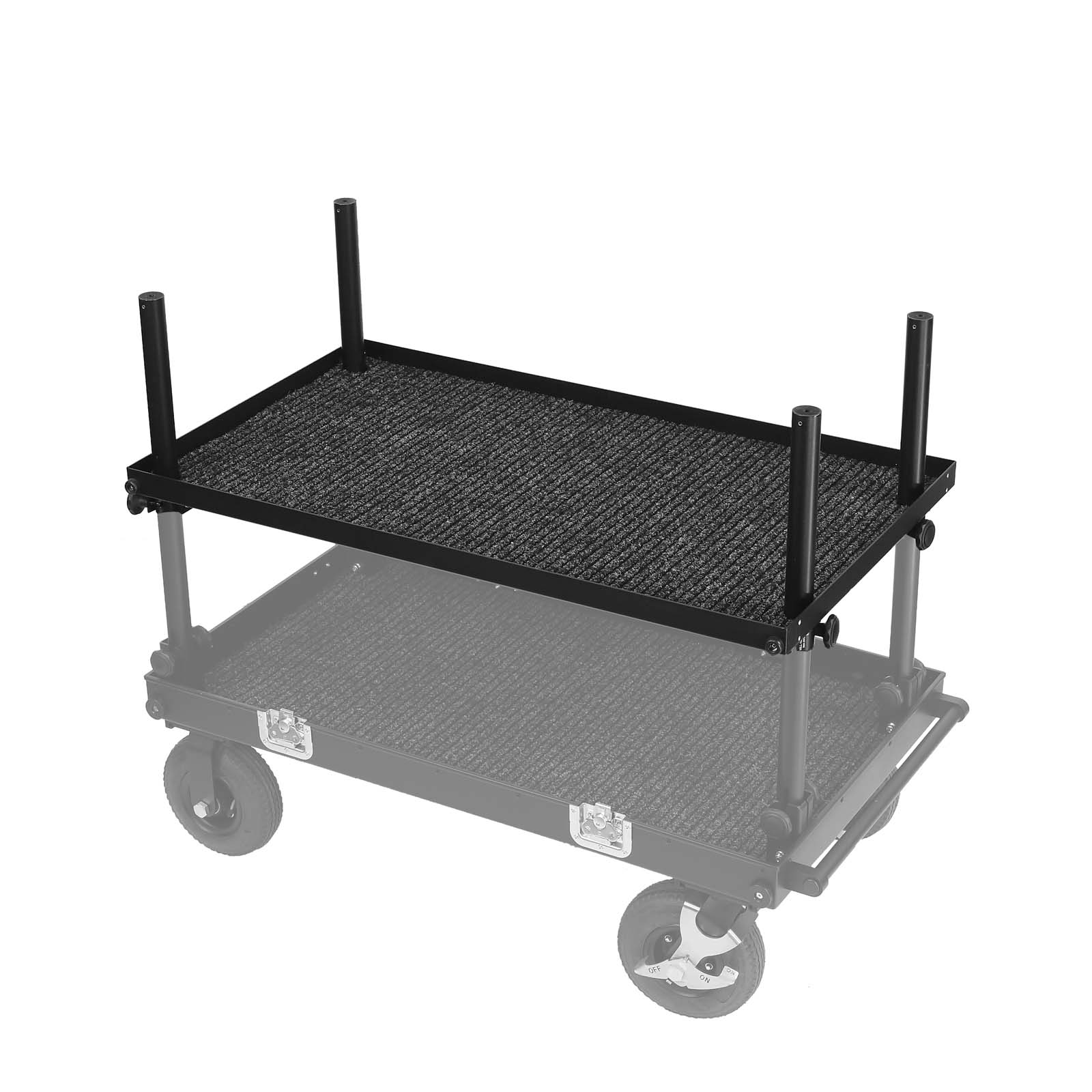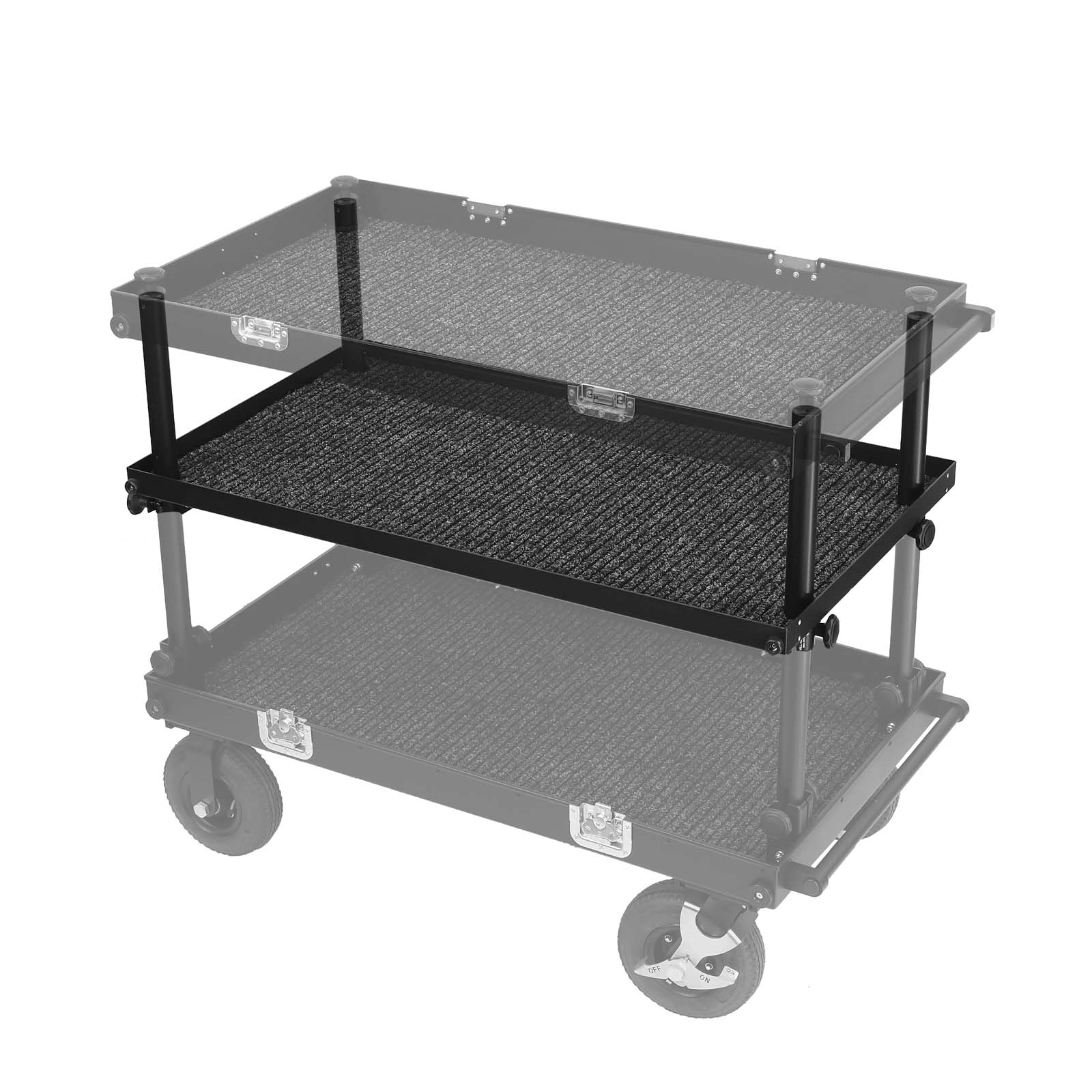 Closed shelf with lower 40mm wall provides better conditions when using cart as a workstation, great to transport equipement